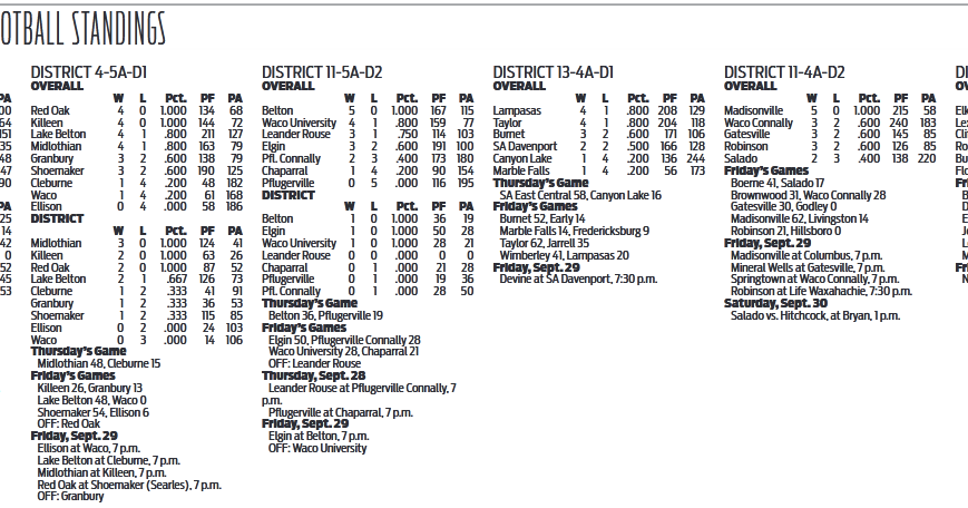 WEEK 5 TEXAS HS AREA FOOTBALL STANDINGS | Shoemaker | kdhnews.com